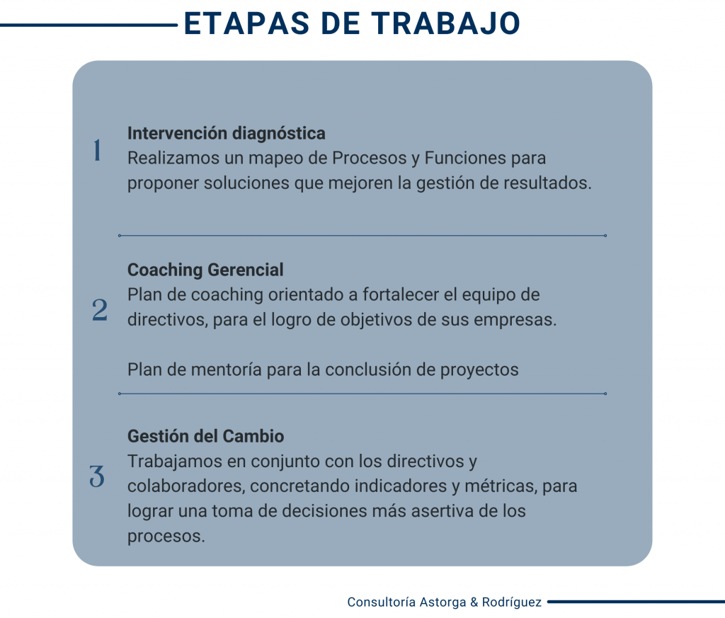 Hemos identificados 3 etapas esenciales que son las bases fundamentales y documentadas para el avance conciliado de las empresas.